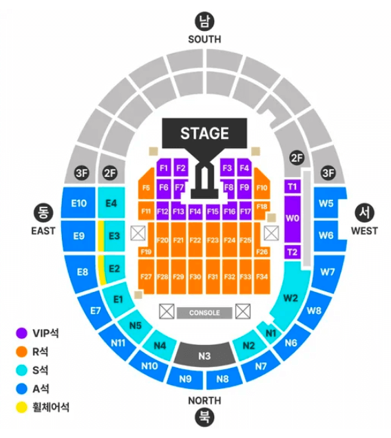 - R석: 무대 정면과 양측, 균형 잡힌 시야