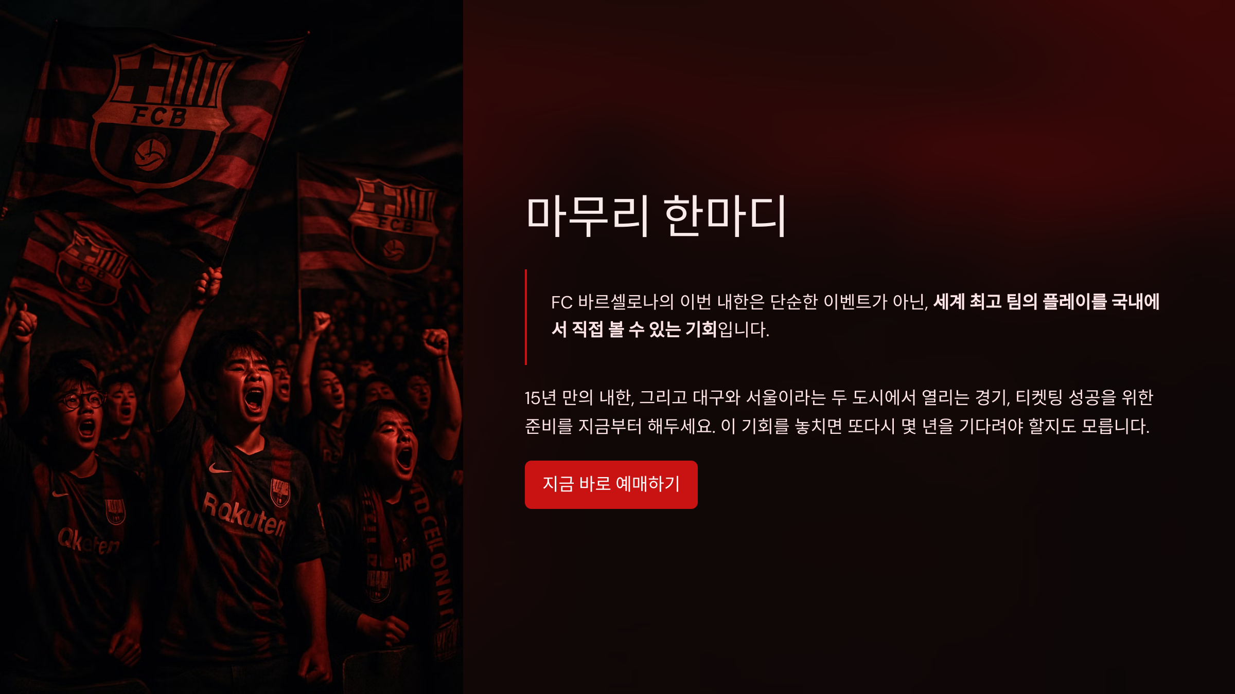 FC 바르셀로나의 이번 내한은 단순한 이벤트가 아닌, 세계 최고 팀의 플레이를 국내에서 직접 볼 수 있는 기회입니다. 15년 만의 내한, 그리고 대구와 서울이라는 두 도시에서 열리는 경기, 티켓팅 성공을 위한 준비를 지금부터 해두세요. 이 기회를 놓치면 또다시 몇 년을 기다려야 할지도 모릅니다.