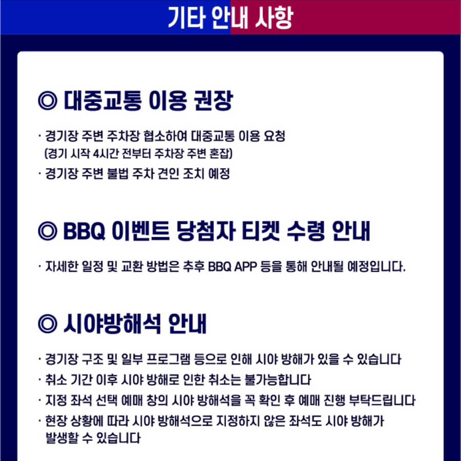 - VIP석: 선수 입장로 근처, 기념품 등 포함