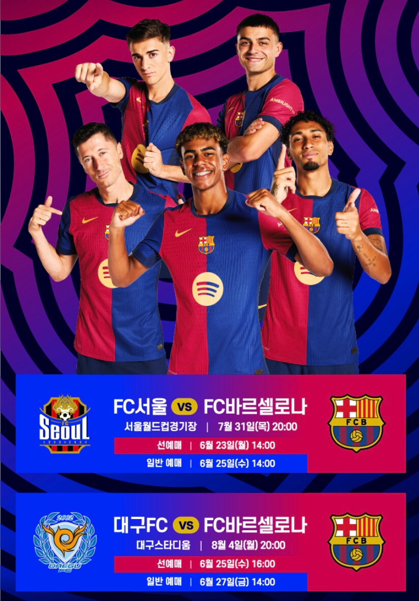 2025년 여름, 전 세계 축구 팬들을 설레게 할 소식이 있습니다. FC 바르셀로나가 무려 15년 만에 한국을 찾습니다. 이번 내한 경기는 단순한 이벤트가 아니라, FC서울, 대구 FC와 펼치는 두 차례 공식 친선 경기로 구성되어 있어 팬들의 기대감이 높아지고 있습니다. 이번 글에서는 FC 바르셀로나 내한 경기 일정, 티켓 예매, 가격 및 좌석 정보, 티켓팅 팁까지 한 번에 정리해 드립니다.