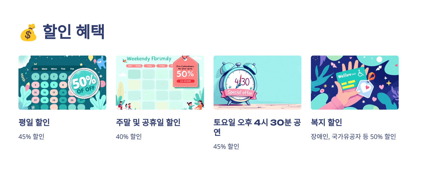 👉 "할인 혜택을 놓치지 말고, 합리적인 가격으로 예매하세요!"